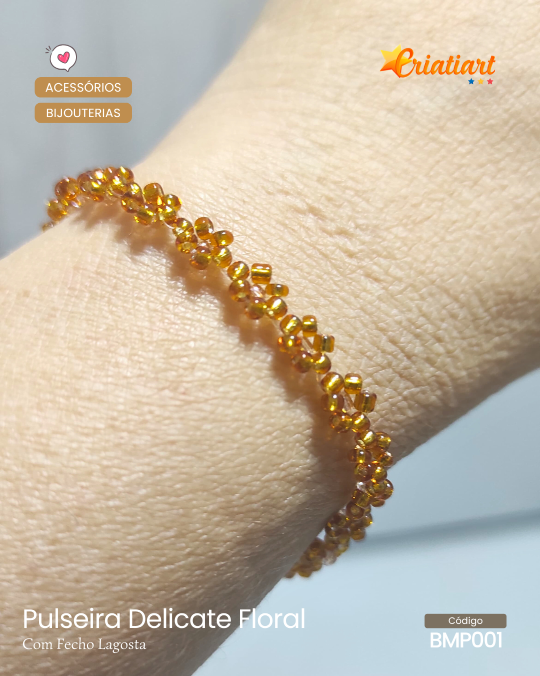 A Pulseira Delicate Floral é um acessório delicado e elegante, confeccionado artesanalmente com mini miçangas formando florais, ideal para quem busca leveza e charme em cada detalhe.